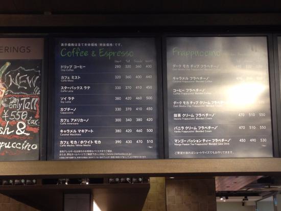 トールサイズのコーヒー $2 (約200円弱)に対して、日本だと330円! どんだけ~って位高い! けど、フラペチーノとかラテ系はそんなに差がないのかも。