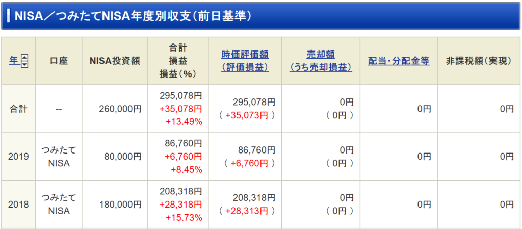 累計投資額26万円で、現時点の評価額が29万5千円だから+3万5千円の利益が出ているわ! 26万円を銀行に預けていても、金利が数十円しかもらえないから、銀行に現金で貯金するのは絶対に損!!! みんなもNISAを始めるべきよ!!!!!
