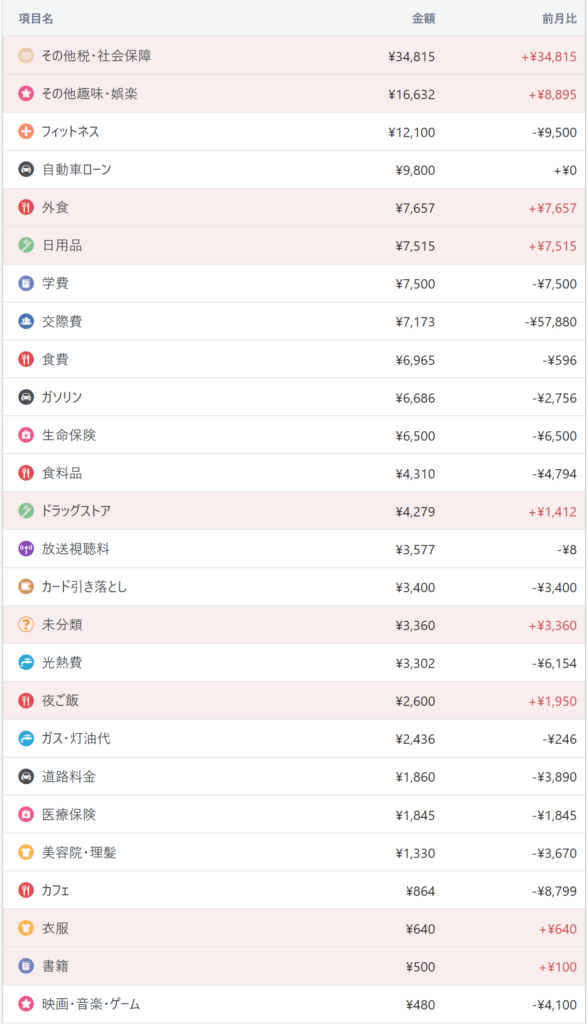 6月の支出。
