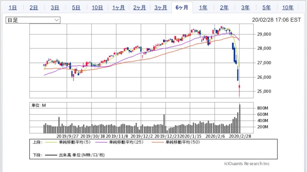 つい最近まで史上最高値をつけていたニューヨーク株式市場。その時はコロナウイルスの影響は限定的っていう楽観的観測もあって、連日最高値を更新してたんだけど、最近は、コロナウイルスやばいんじゃね??っていう雰囲気なって、各株価指数は連日の暴落! しかも一日の下げ幅あのリーマンショックの時よりも大きく、過去最大の下げ幅になったのだとか!