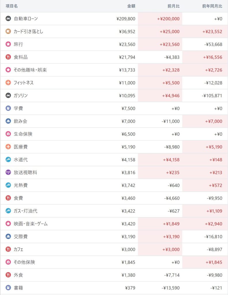 7月の支出。