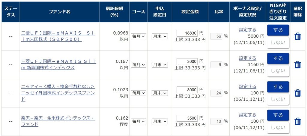 つみたて額3.3万円の内訳は前回から変わらず、米国中心ね~。