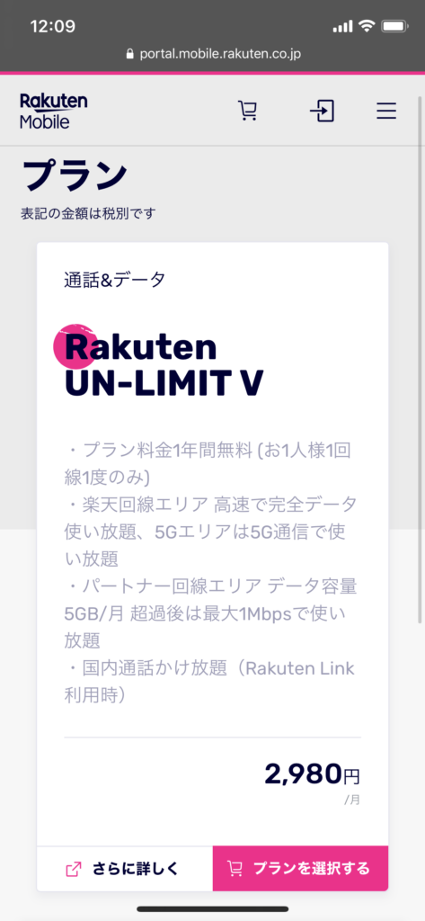 プランを選択。2980円/月と書かれてるけど、1年間はタダ!