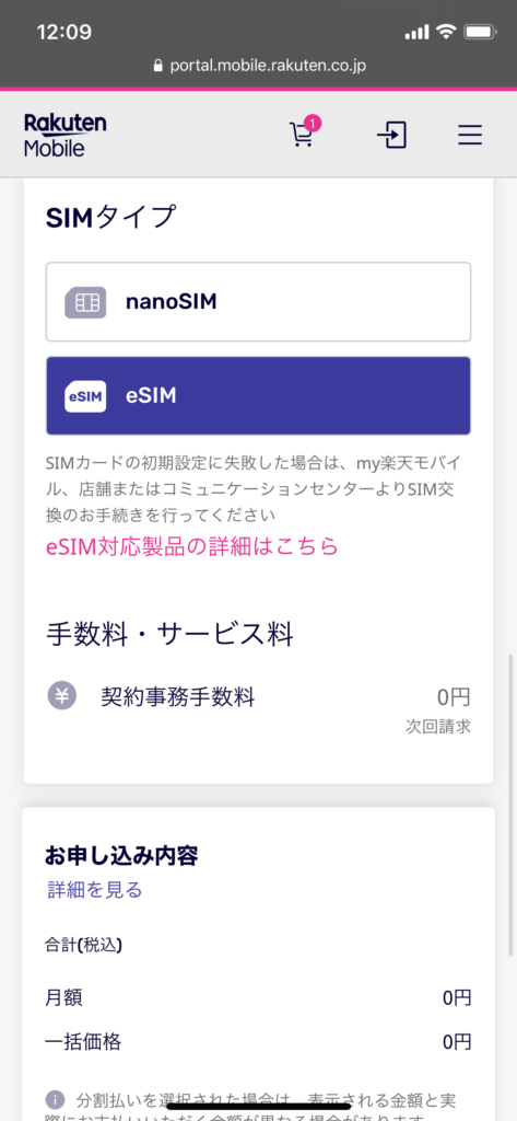 アタシのケータイはeSIMに対応したiPhoneだからeSIMを選択。(eSIM対応かわからな~いって人はnanoSIMを選んでおけば間違いなと思うからそっちを選びましょう♪)
