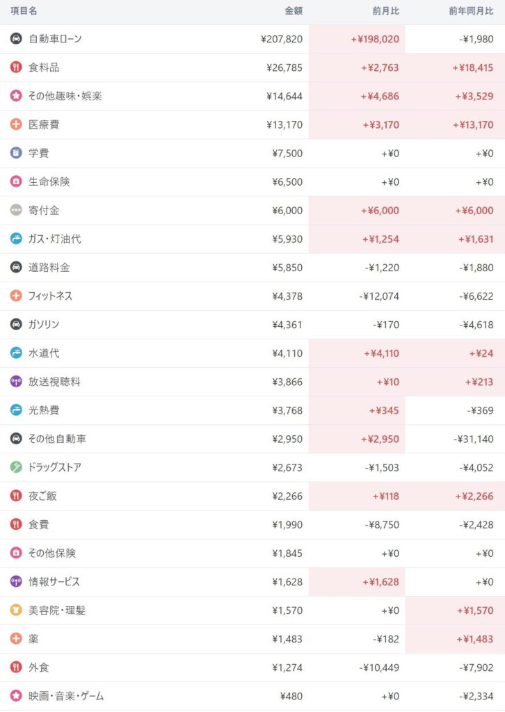 今月はローンのボーナス払い月ということもあって、赤字は予想してたけど、以外にも生活費がいつもより低く抑えられてたから思ってたほど赤字額が低かったわ♪