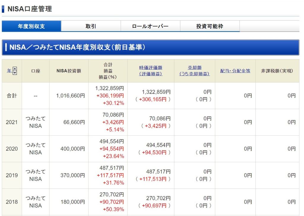 2年数か月で100万円をつみたてて、トータルリターンはなんと30%に!!銀行に預金してるのがほんとにバカらしく思っちゃうわね(汗) 2018年のつみたて分はなんと50%も増えてる・・もう笑うしかないわね(笑)
