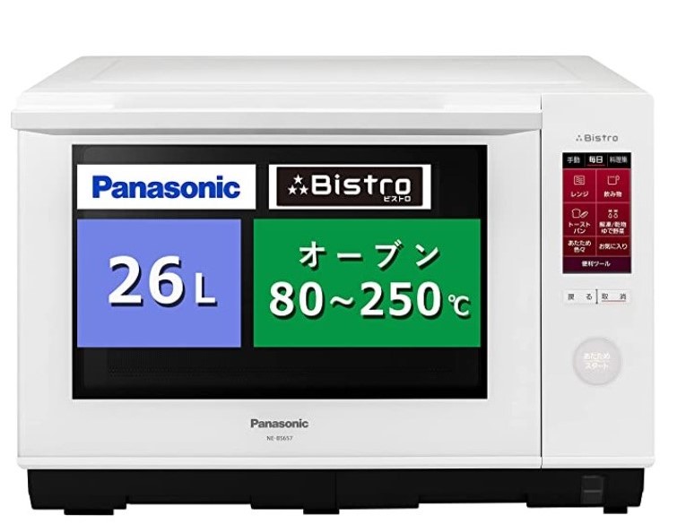 今回ポチったのが、Panasonicのビストロっていうスチームオーブンレンジ! 今回アタシがこのレンジを選んだ理由は・・・・ 完全にジャケ買い(笑)操作ボタンが少ない&ドア面にメニューの文字が入ってなくてスッキリ見えるやつが良かったのよね~。しかも今回購入したこのモデルは2020年モデルの型落ち品ってことで結構底値で買えたわ! 約5.8万円だったわ~!(アタシが買った直後に在庫が掃けたのか、値段があがってたわ) ちなみに2021年モデル(機能的にほぼ一緒)の家電量販店での値段は8.3万円だから、型落ちモデルの在庫処分品とかだと高コスパよね~。