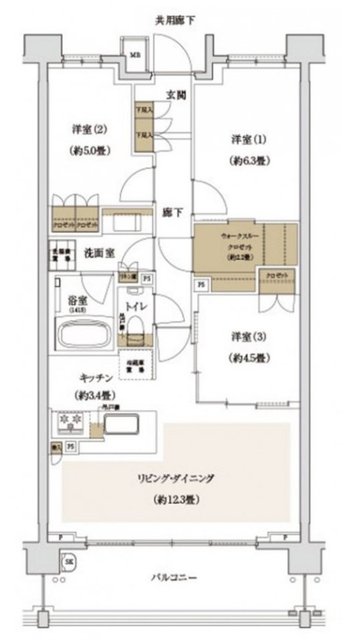 以下の間取り図はアタシが契約したマンションの間取り図ではないだけど、大体同じ感じの間取り。