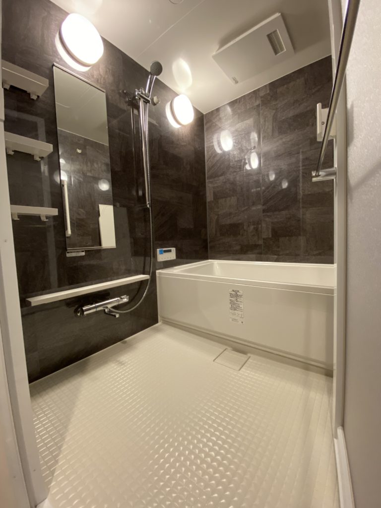 浴室はオプションでアクセントパネルを1面から4面に。7000円位だったから実物を見て付けてよかった~て思ったわ!